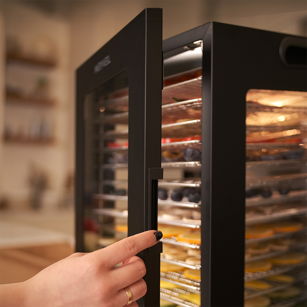 Meyvel MDH14-2S (Black) — это современный дегидратор, который создан для тех, кто хочет заготавливать фрукты, овощи, мясо, травы и ягоды без потери их вкуса и пользы круглый год. Прочный корпус, продуманная конструкция и умная электроника превращают его в надёжного помощника на каждый сезон.