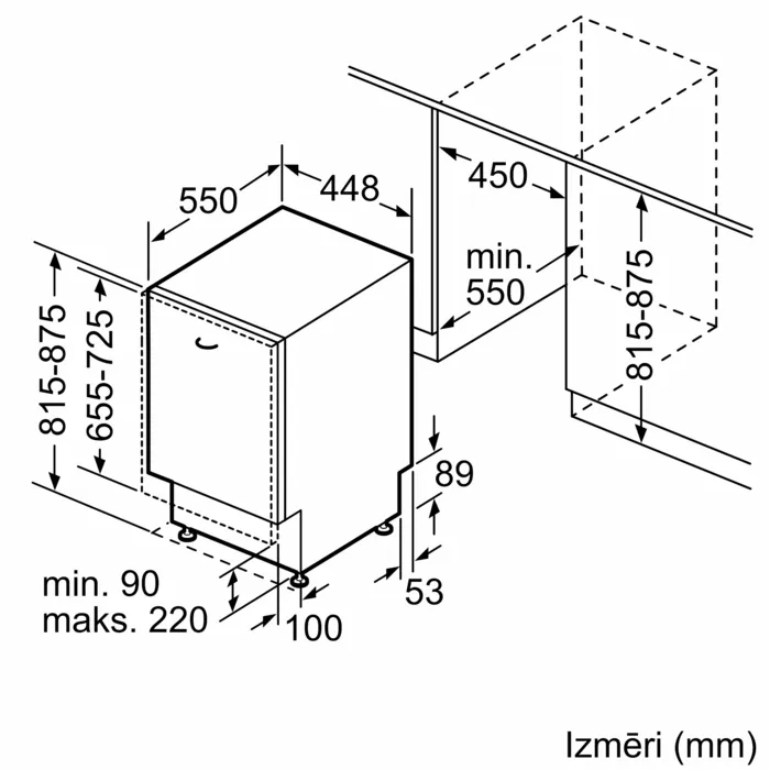 - Глубина: 550 мм