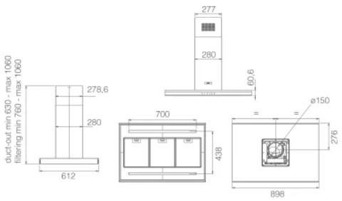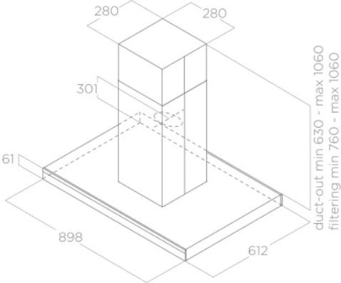- Минимальная высота над электрической плитой: 50 см