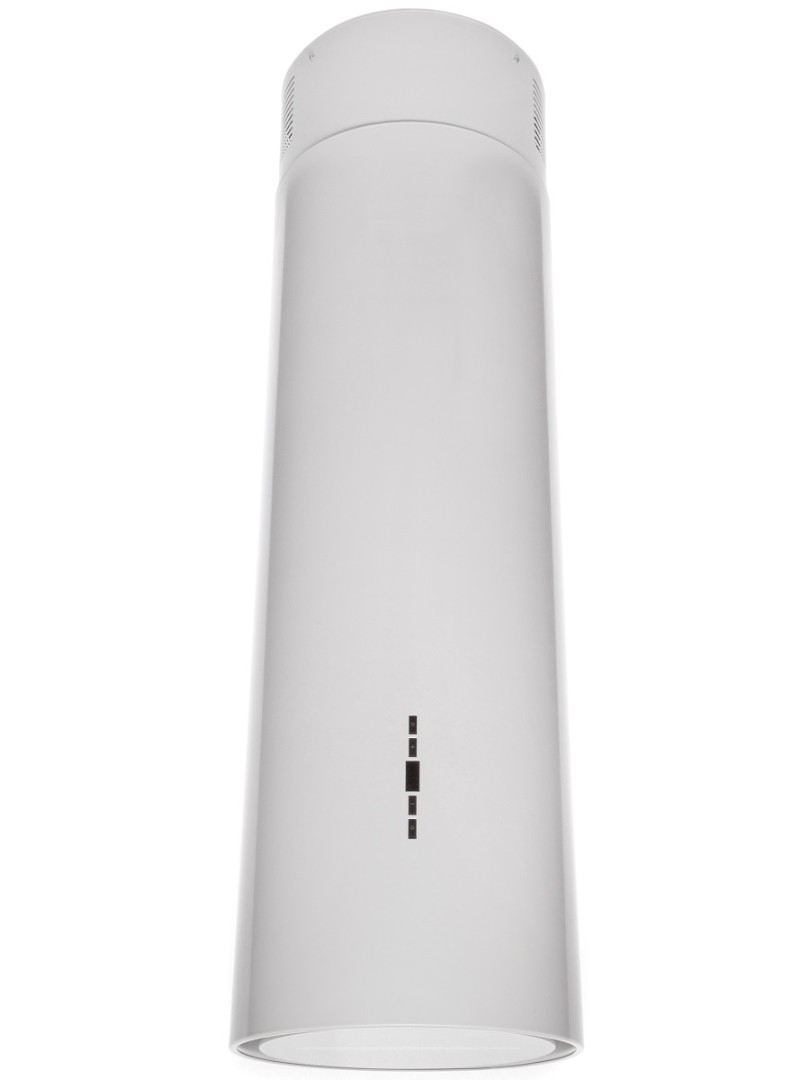 Вытяжка выполнена в форме цилиндра. Геометрические формы повсеместно используется в современных дизайнерских проектах, они ассоциируются с простотой и лаконичностью. Сочетание стали и блеска закаленного стекла создают ощущение легкости прочной конструкции. Декоративный стеклянный люк скрывает алюминиевый, жироулавливающий фильтр, придавая завершенность композиции.