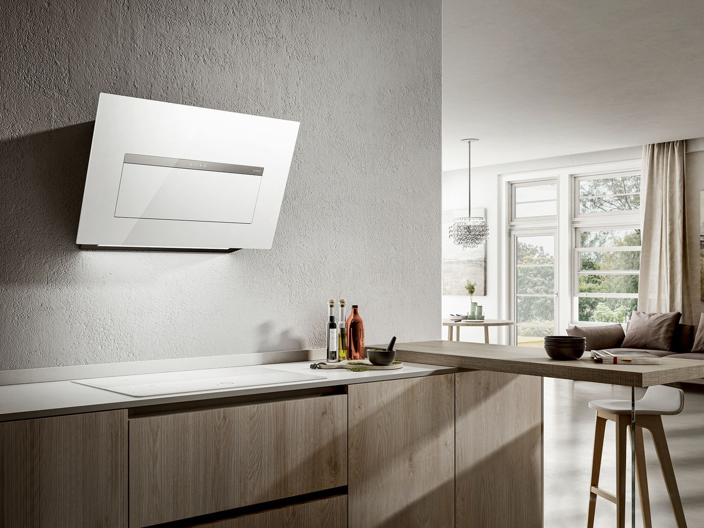 Вытяжка Bloom-S идеальна для открытых пространств, а новые виды отделки позволяют ей отлично сочетаться с современным стилем кухонной обстановки. Эта система поставляется в двух вариантах отделки: закаленное белое стекло и керамика GRES DEKTON® из ценных материалов с такими свойствами: повышенная устойчивость к УФ-лучам, отличная устойчивость к царапинам и пятнам. Bloom-S украшена алюминиевой полосой, отделанной под титан, придающей четкость и характерность.