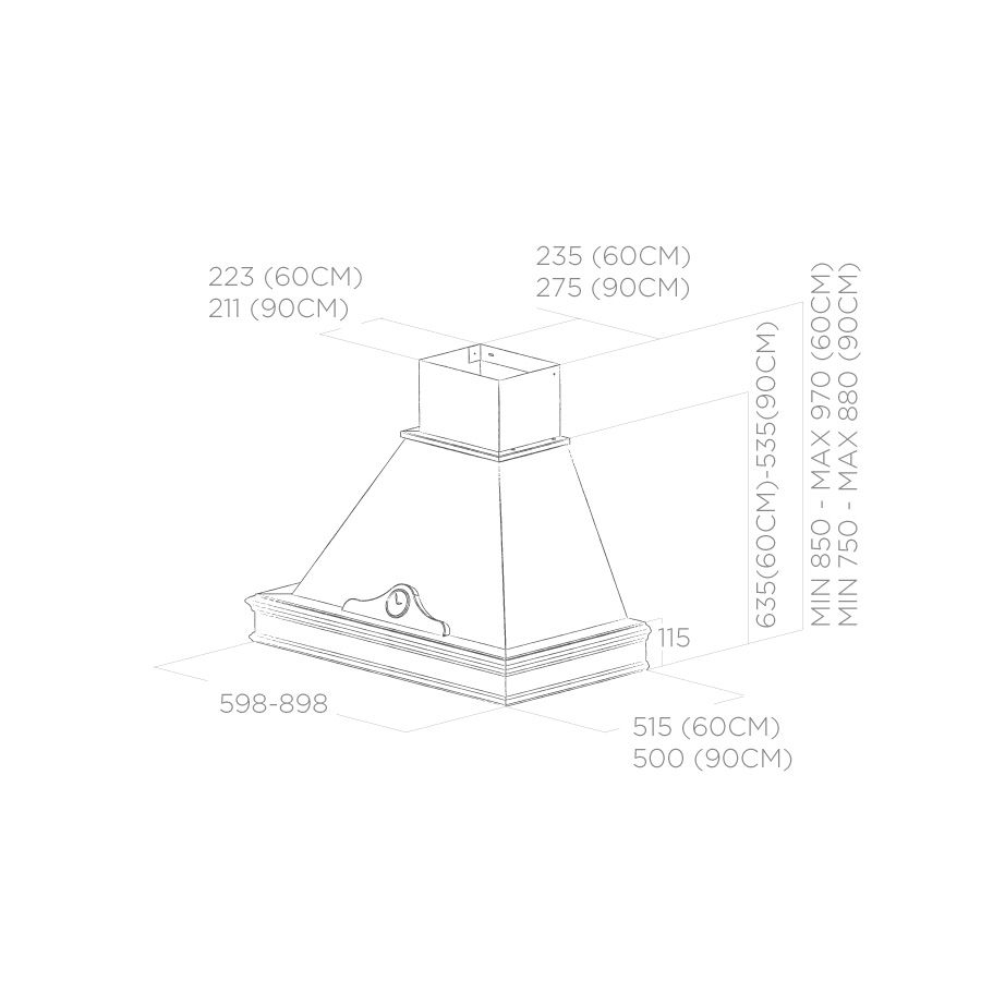 Элегантная и практичная вытяжка в стиле кантри. Производится в двух ширинах - 60 и 90 см.