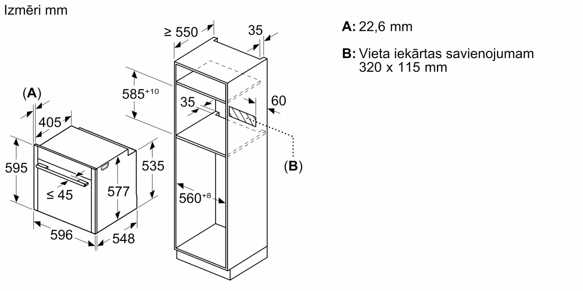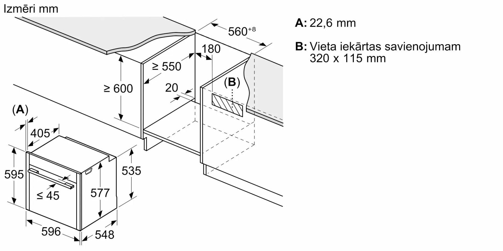 • Размеры ниши для встраивания, см (В х Ш х Г): 58.5-59.5 х 56-56.8 х 55
