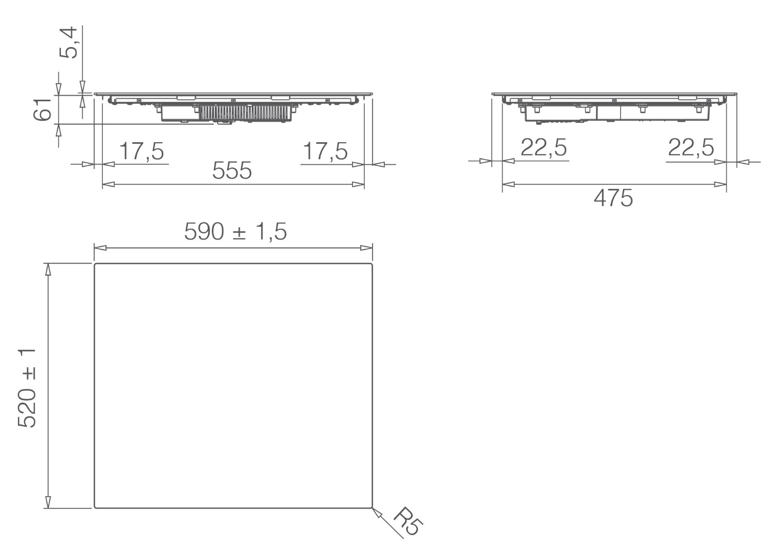 - Дальняя, правая конфорка: Ø 18 cm - 1,5/2,0 kW