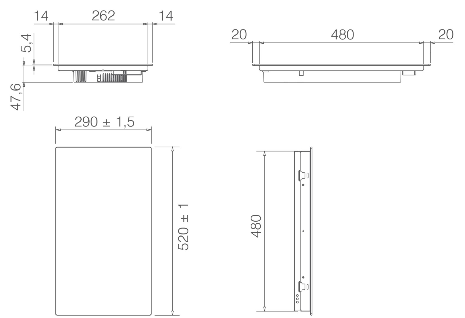 - Дальняя, левая конфорка: OCTA 21x19,1 cm - 2,1/3 kW