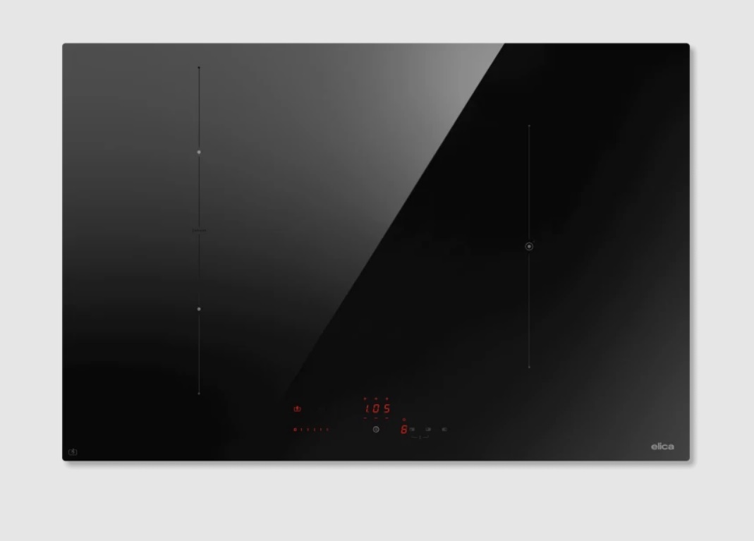Варочную панель можно подключить через Bluetooth к вытяжке Elica, которая будет автоматически регулировать освещение и процесс аспирации в зависимости от активированных зон приготовления.