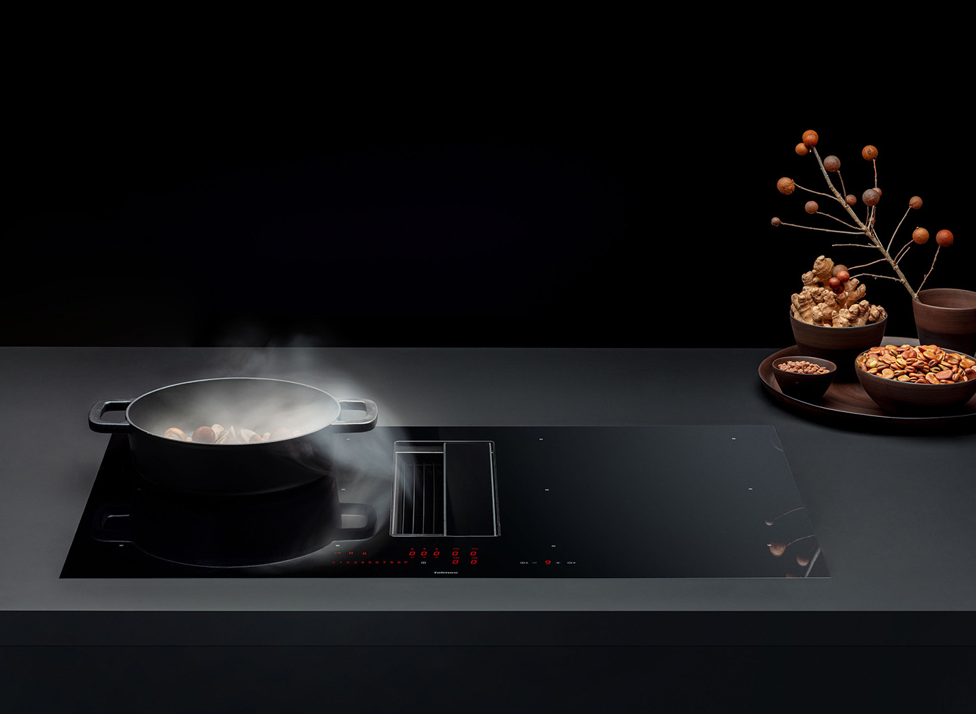 - В варочных панелях на скрытой части, которая находится под столешницей