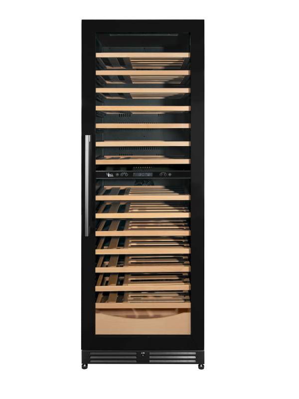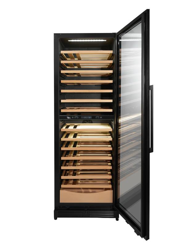 Этот вместительный винный шкаф, поддерживает температуру в двух независимых зонах: верхняя зона 5°C –12°C / нижняя зона 12°C –20°C
