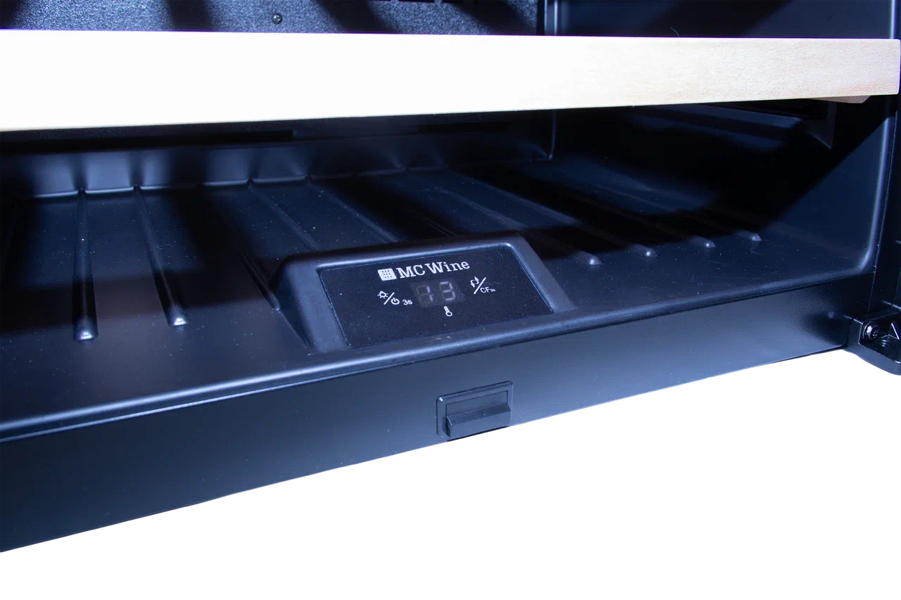 - Винный холодильник MC Wine W24B стабильно держит заданную температуру при любых внешних условиях;