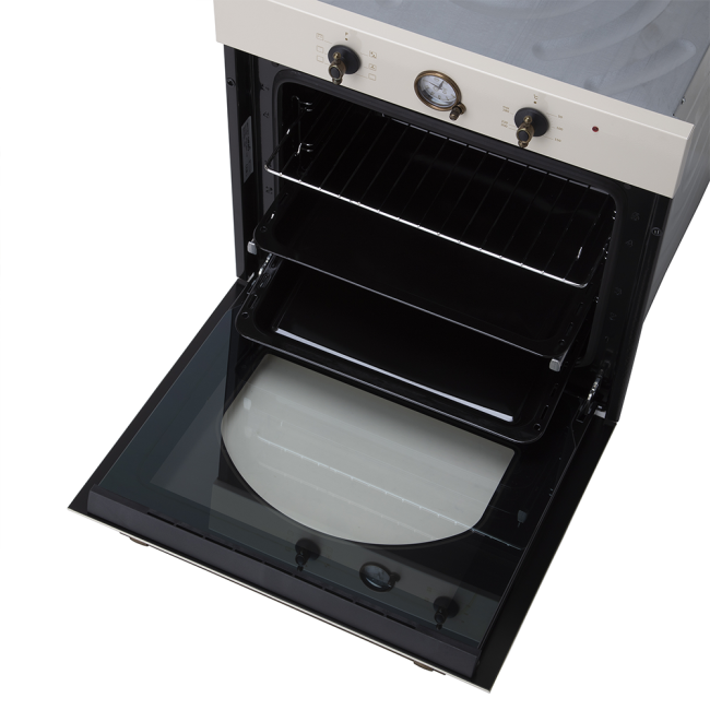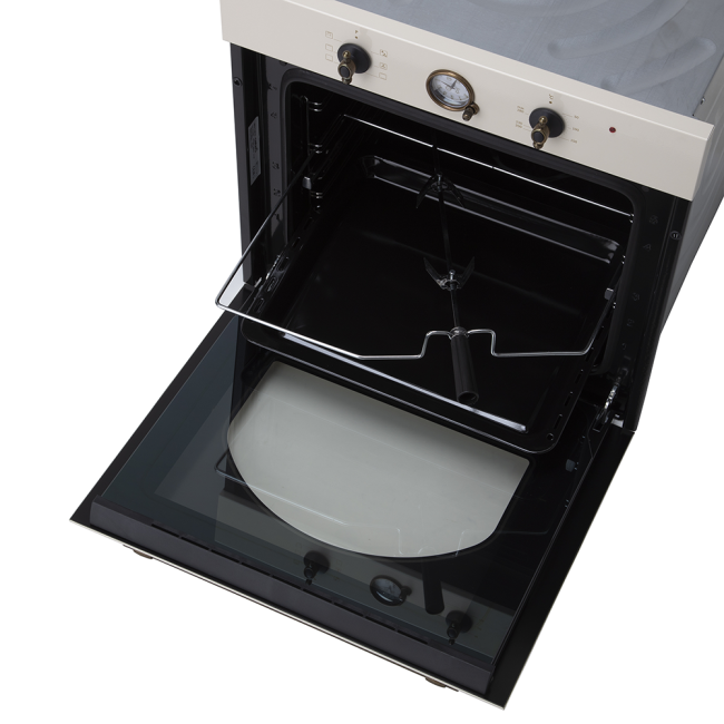 С помощью двух надежных механических регуляторов на панели управления духовым шкафом происходит установка температурного режима и программы приготовления. Владелец может осуществить выбор опираясь на иллюстрированные иконки рядом с регуляторами.